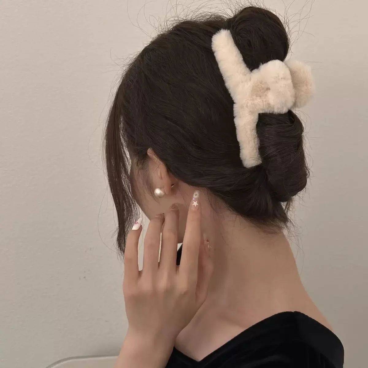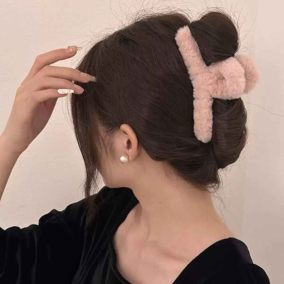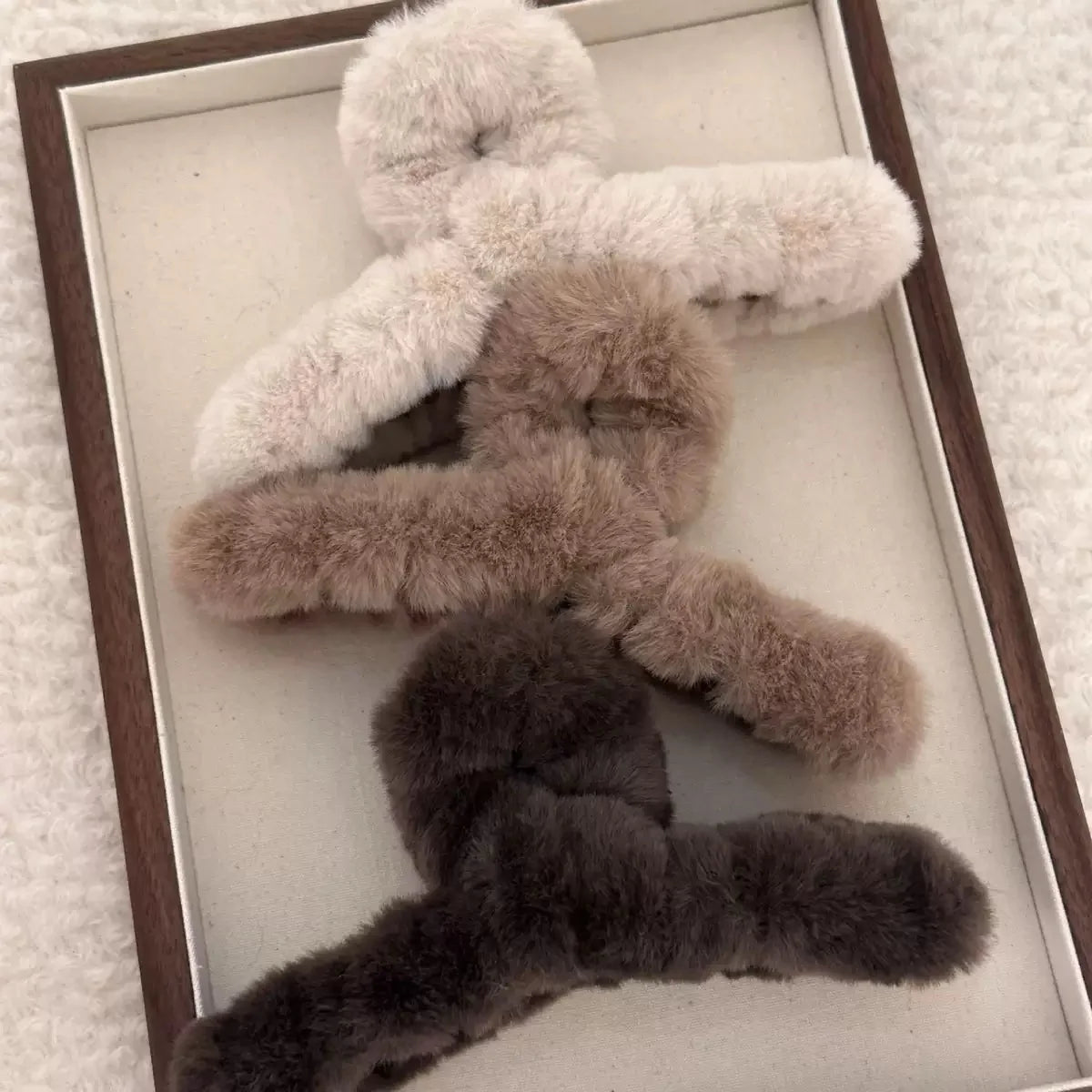 Denna fluffiga hårklämma är den eleganta lillasystern till vår populära XL-klämma – lika mysig, men i ett smidigare format. Perfekt för dig som vill ha den fluffiga vinterlooken utan att klämman tar för mycket plats.